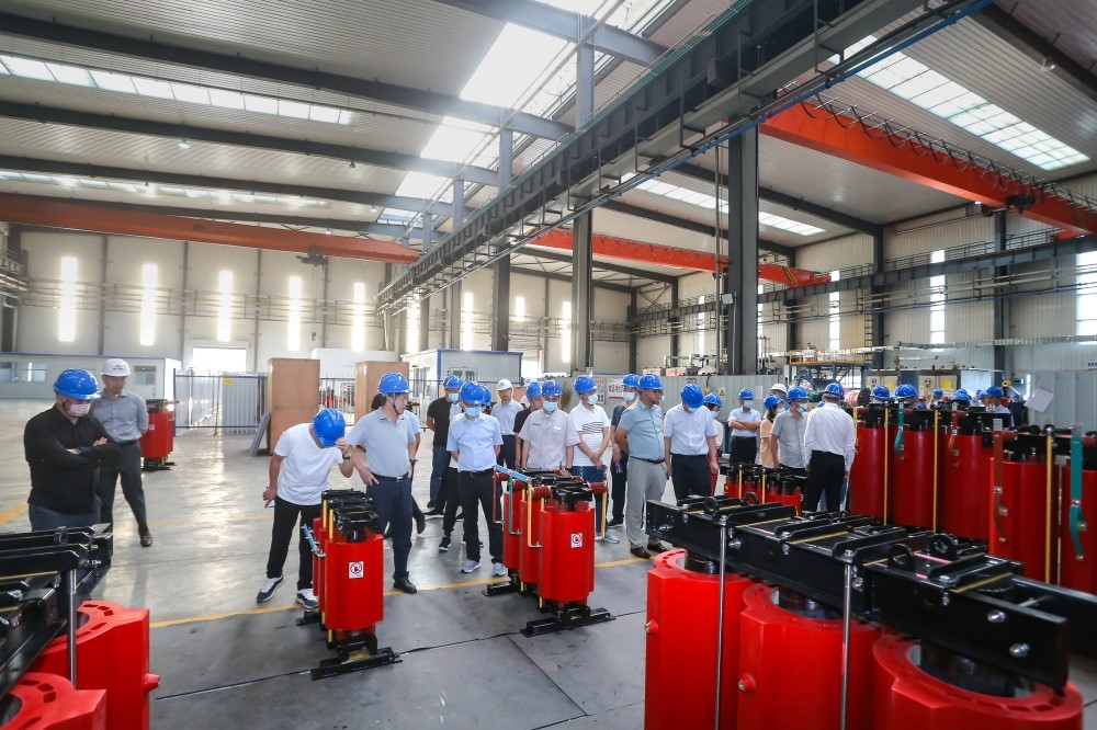 會議結(jié)束后,全體與會代表來到山東哈大電氣有限公司八角工業(yè)園廠區(qū)及鐵抗新車間考察指導(dǎo),圖為與會代表在展示廳了解哈大的發(fā)展歷程、資質(zhì)及空抗產(chǎn)品、鐵抗產(chǎn)品。