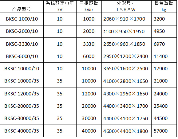 6.常用型號(hào)并聯(lián)電抗器參數(shù)一覽表